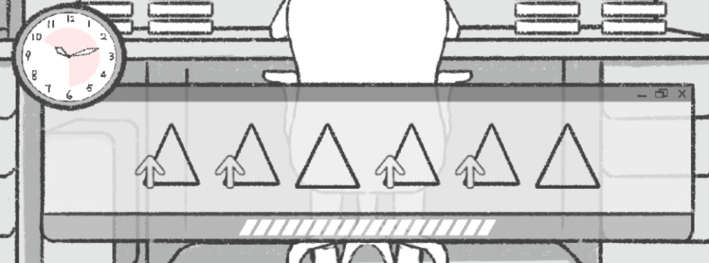 In the beginning, I want to simulate the working condition of modern office workers. Typing is an obvious action that every office worker will do, so I want my players to type on the keyboard, too. Typing letters on the keyboard seems a little bit difficult for every player, but typing arrow keys is acceptable. In some music games, the gameplay is to input the correct key in a specific rhythm, which will strengthen the achievement of players. For me, I want my players to feel pressure in the game, so I add a pressure bar and timing to every file. If the value of pressure is too high, the HP will decrease.